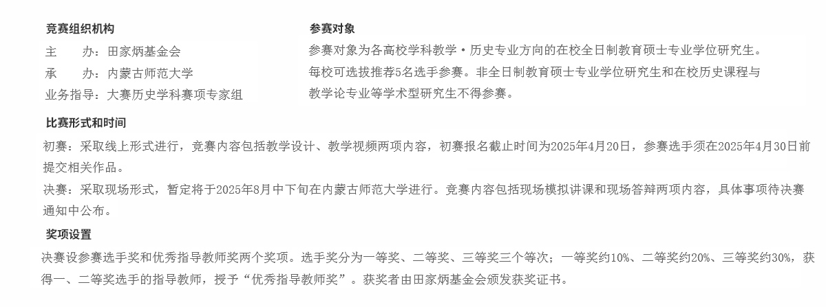 内蒙古师范大学2025年“田家炳杯”全日制教育硕士专业学位研究生 (学科教学·历史)教学技能大赛